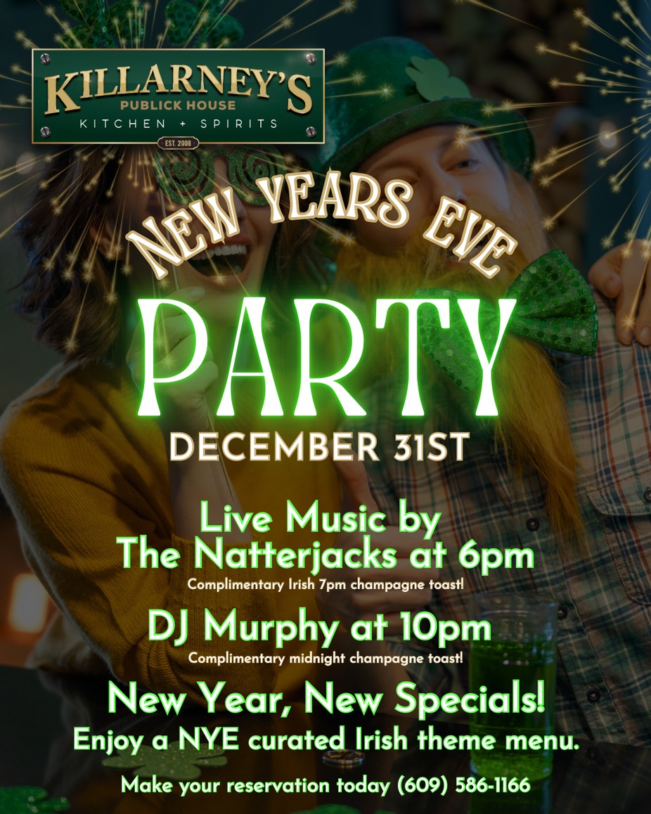 Ring in the New Year with some Irish Luck💚 Join us for Live Music by The Natterjacks at 6pm followed by DJ Murphy at 10pm - Enjoy an Irish Toast at 7pm and MORE!